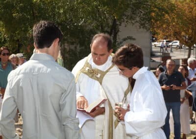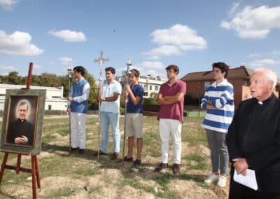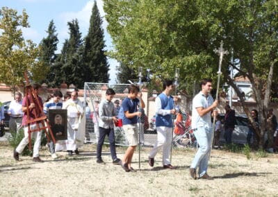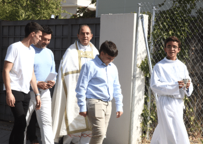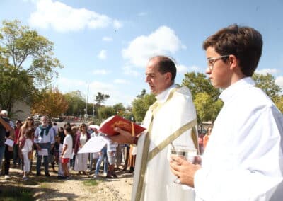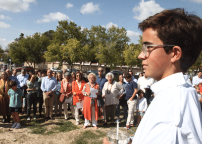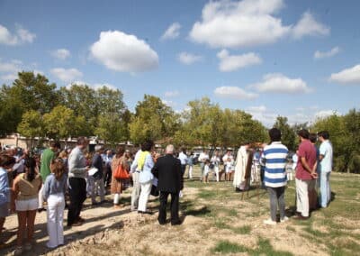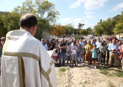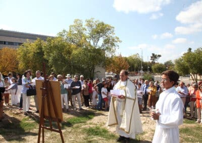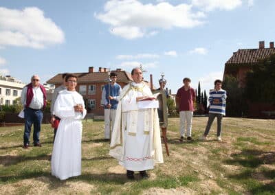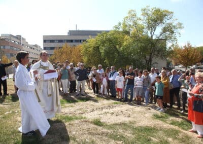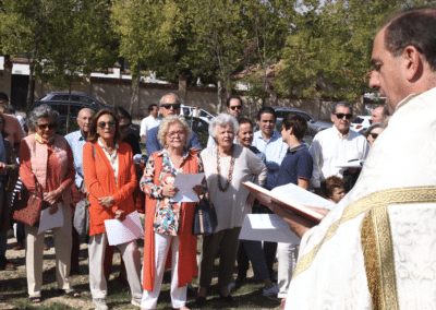 El viernes 7 de octubre se publicó el decreto por el que se conceden los terrenos para la edificación de la nueva Parroquia de San Josemaria. Un paso muy importante que llevamos muchos meses esperando. El pasado 9 de octubre después de la Misa de 13.00 hicimos una procesión hasta la nueva parcela con un retrato de San Josemaría y acompañados de muchísimos feligreses que no se quisieron perder tan magno acontecimiento. El señor párroco bendijo la parcela en todas sus orientaciones, rezamos un Te Deum en acción de gracias y a continuación lo celebramos con un vino español en los jardines de la parroquia.