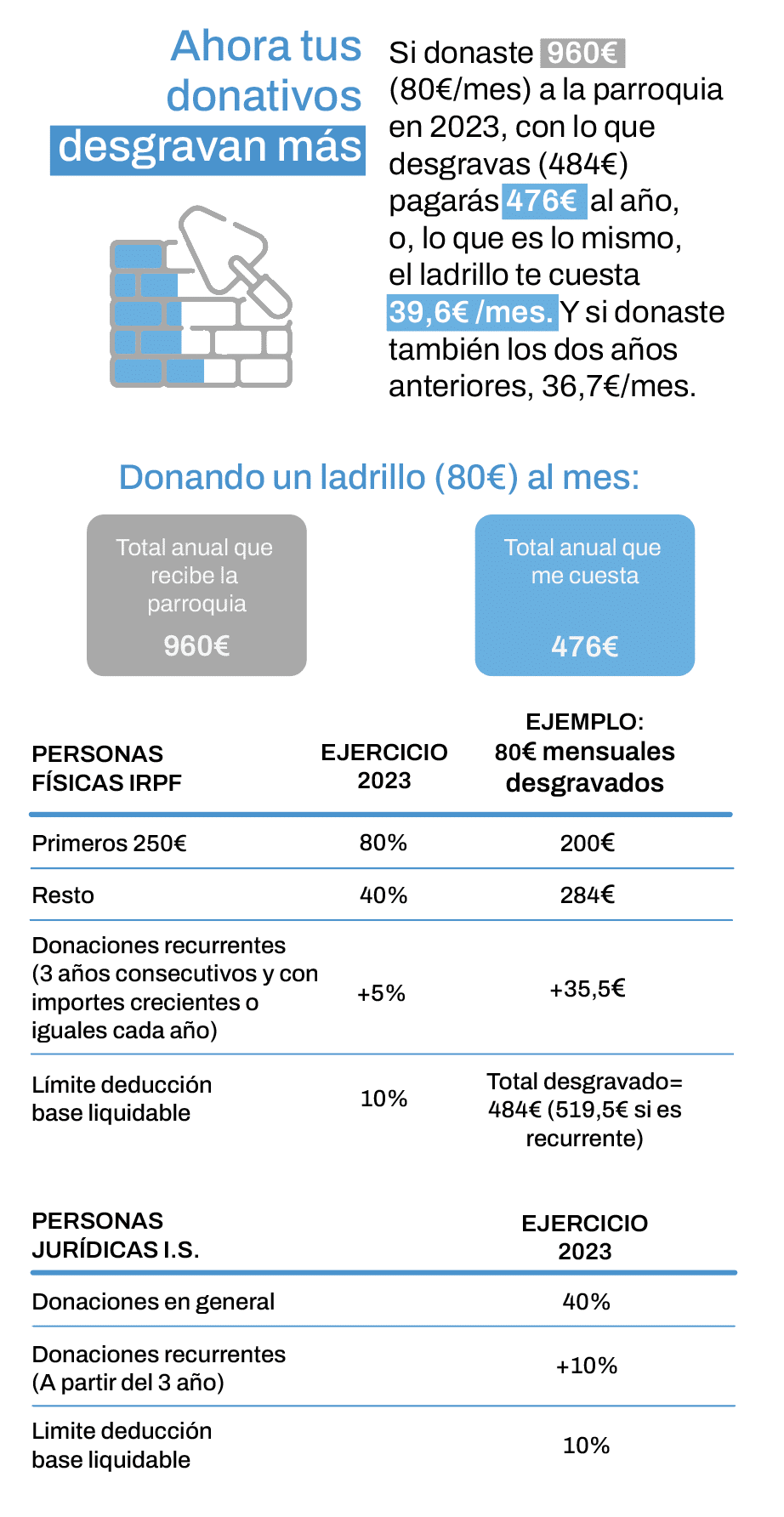 Queremos que la parroquia sea de todos. Más que grandes donaciones queremos conseguir muchas donaciones recurrentes, aunque sean de cantidades modestas.