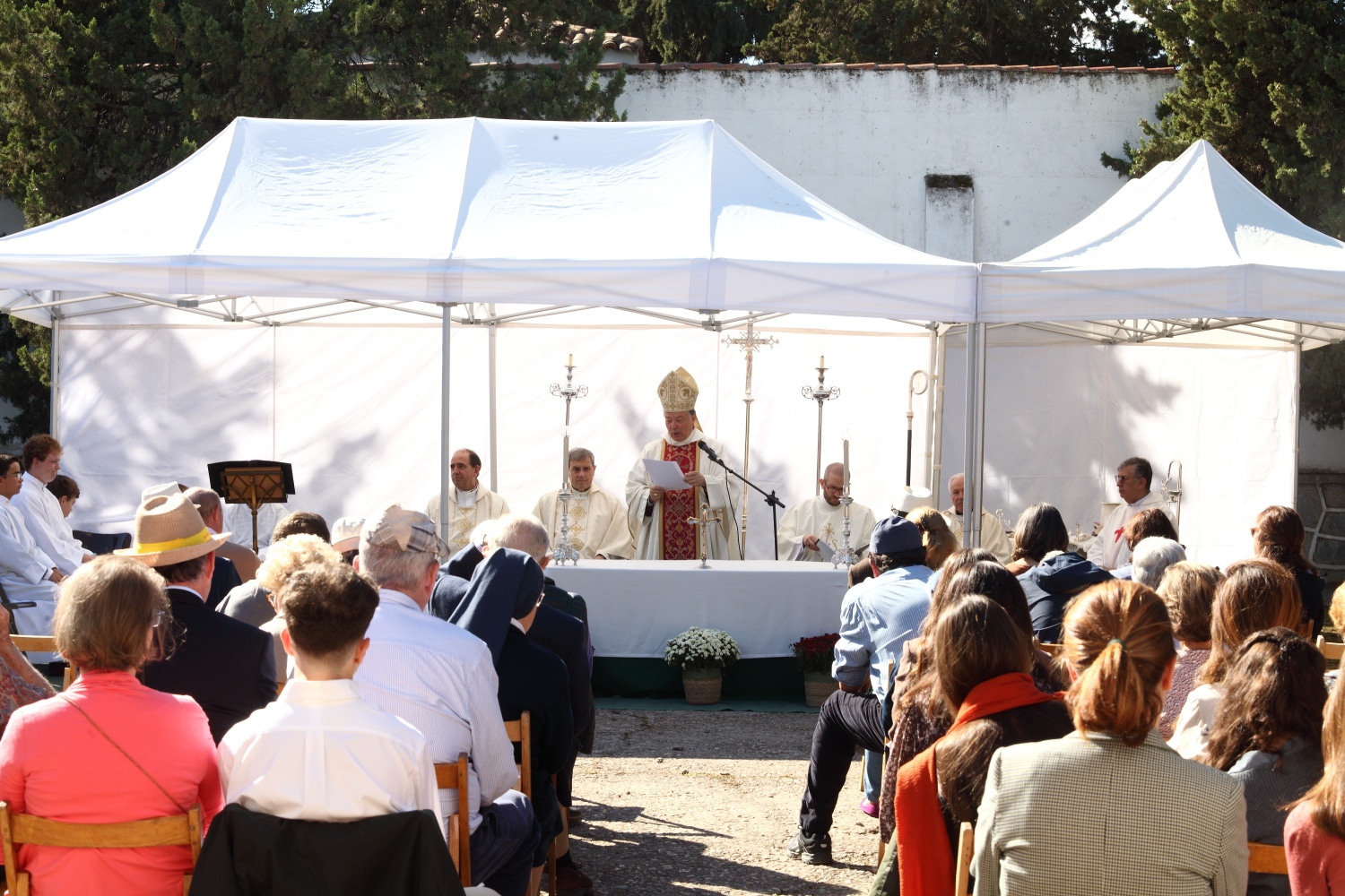 Todos los años se celebra una solemne misa en el camposanto de los mártires de Aravaca. Rezamos por todos los difuntos que están allí enterrados, unos 800, y nos encomendamos a los beatos mártires que también descansan allí, 26 ya beatificados.