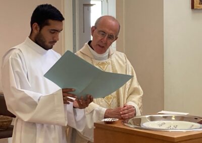 Por lo tanto, Raimundo Romero; Vicario parroquial de San Josemaría se ofreció a oficiar la ceremonia, recordando su conocimiento de francés adquirido durante su etapa de Bachillerato.Para el nacimiento y el posterior bautizo, la familia decidió reunirse en Madrid.